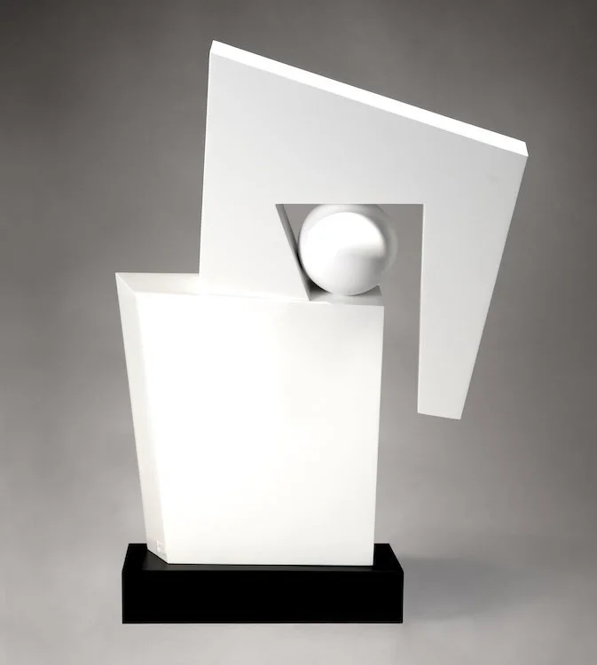 No.12 Machined Polyurethane, Wood, Aluminum Sphere, Enamel Paint. 28"H 22"W 12"D. 2021.